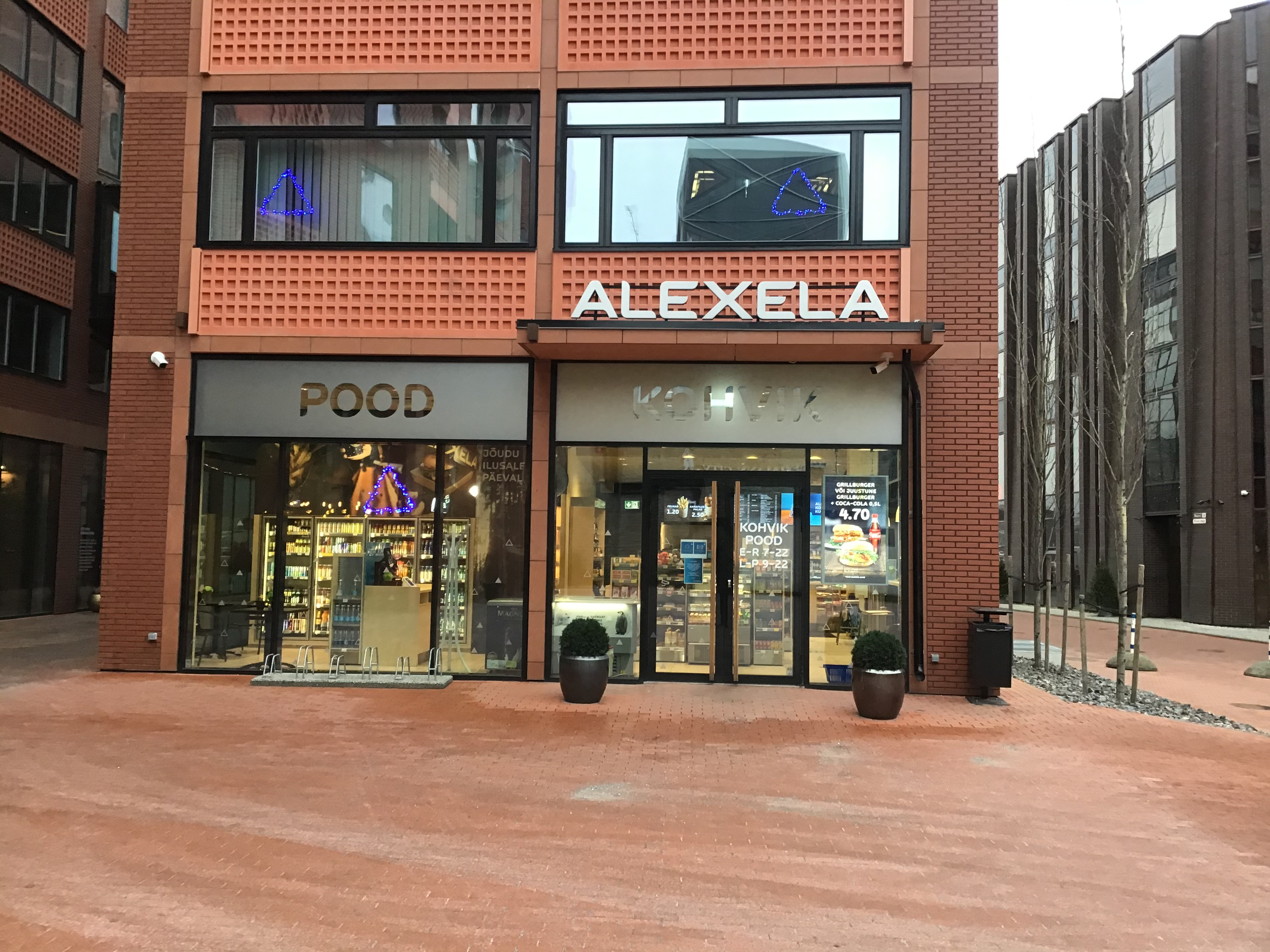Alexela mugavuspoodidest saab kohvi ja karastusjoogid ning kiirestivalmiva söögi mugavalt ühest kohast. Toiduvalmistamisel katsutakse hoida võimalikult tervislikku joont. Näiteks ei küpsetata friikartuleid fritüüris, vaid ahjus. Paljudes mugavuspoodides pakutakse hommikuti putru ning lõunaks sooja suppi. Nägemispuude ja kuulmispuude erivajadusi arvestavad lahendused puuduvad.