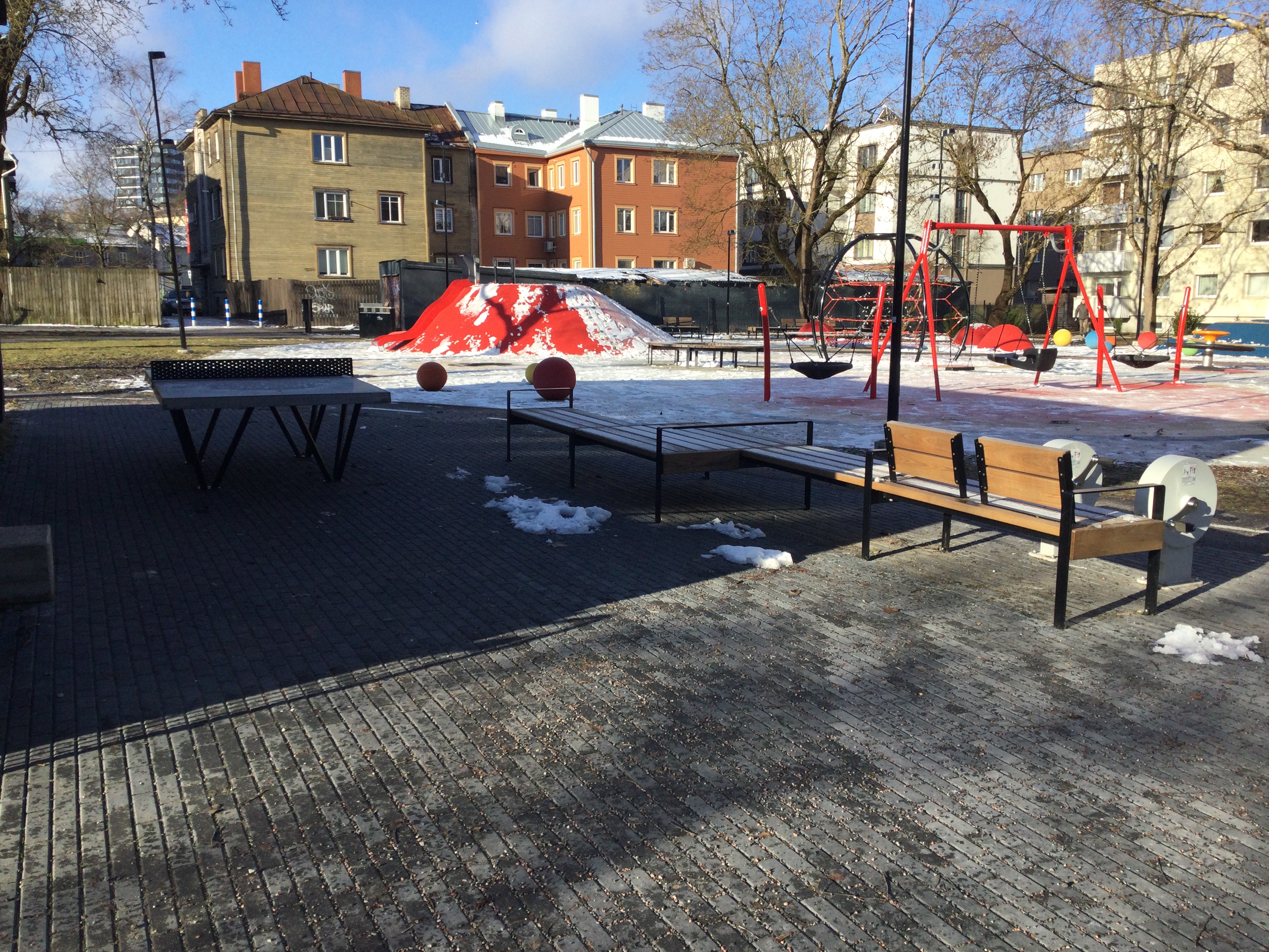 | Erinevate teekatetega (uni-kivi, asfalt, killustik) ja rohkete atraktsioonidega mänguväljak. |