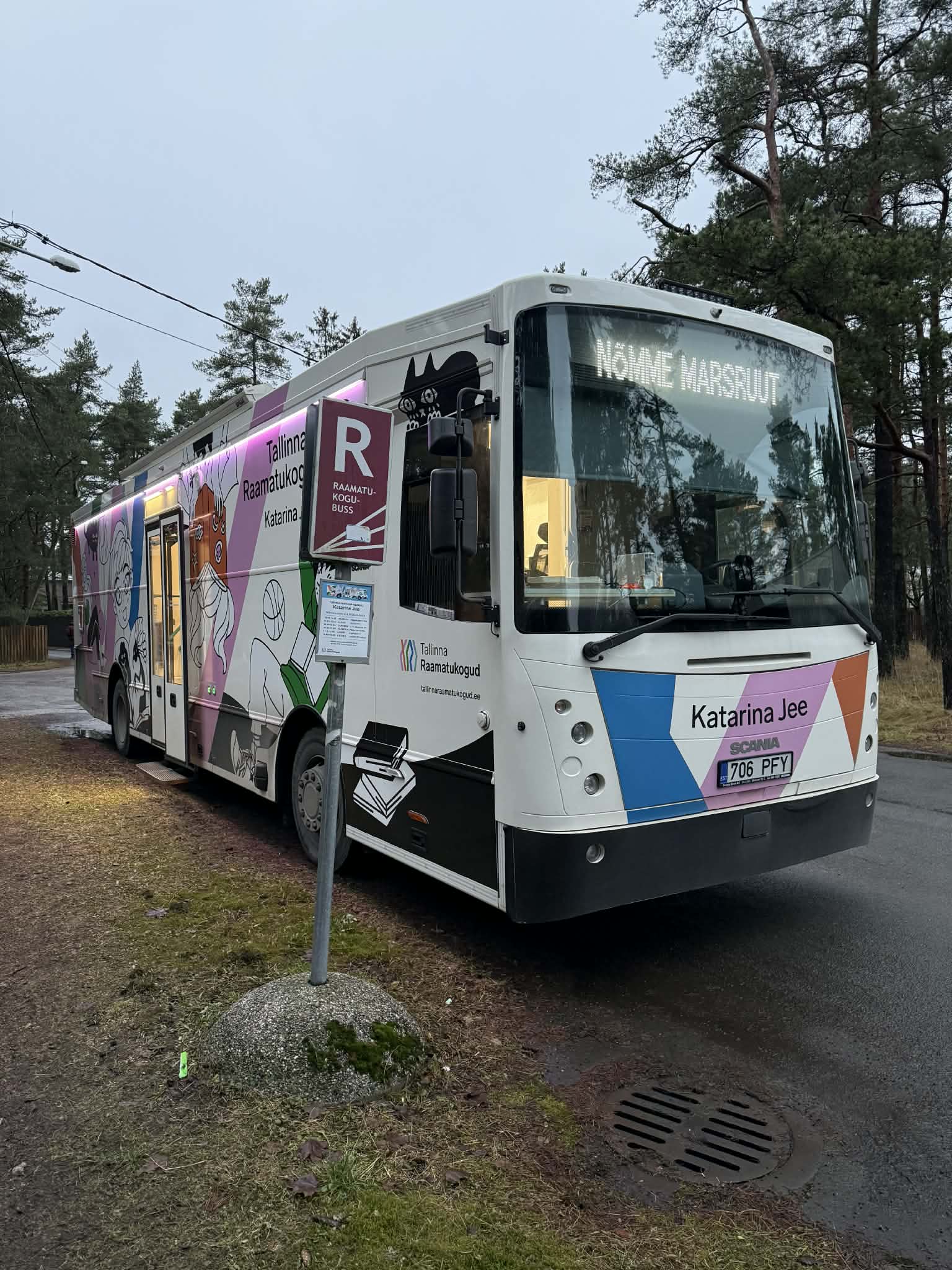 | Erivajadustega külastajatele on bussis invatõstuk, silmusvõimendi ja luup. Invatõstuki kasutamiseks on vajalik töötaja abi. Kui on soov kasutada invatõstukit, palume vajutada ukse juures asuvat nuppu „VAJAN TÕSTUKIT“. Nupu vajutamisel tuleb kohale töötaja, kes aitab turvaliselt bussi siseneda. Raamatukogubussis on ligikaudu 4000 erinevat teavikut, pakkudes valikut teadmis- ja ilukirjandusest, mis on mõeldud lastele, noortele ja täiskasvanutele. Kogus leidub teoseid peamiselt eesti ja vene keeles, kuid ka veidi inglise ja ukraina keeles. Raamatukogubuss peatub erinevates kohtades Tallinna linnas. Tutvu marsuudiga https://keskraamatukogu.ee/raamatukogu/raamatukogubuss/#marsruut ja leia omale lähim peatus https://www.google.com/maps/d/viewer?mid=1DM0h6EldRKzgFe-5Z94tDLV-XEs&ll=59.42331835754194%2C24.727236800000007&z=12 Reedeti saab raamatukogubussi külla kutsuda Tallinna lasteaedadesse, koolidesse, huvi- ja päevakeskustesse ning teistesse asutustesse, et koos avastada ratastel raamatukogu ja raamatute huvitavat maailma. |